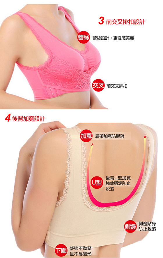 .....宅配新設計雙側邊加寬提拉,無壓迫感,超輕柔舒適,完整包覆副乳,內穿、外搭皆適宜,運動、睡覺皆可穿!