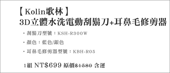 【Kolin歌林】3D立體水洗電動刮鬍刀KSH-R300W