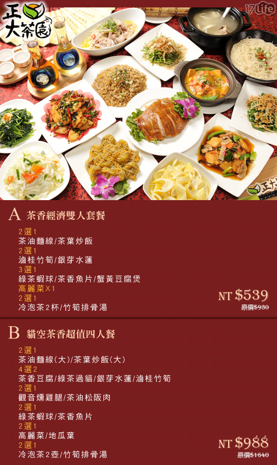聚餐時刻又到了, 17Life-吃喝玩樂團購3折起,又讓愛聚餐的我們買不停吃不停,價格超殺,如果點進去已經售完別捶心肝喔!限時限量的團購券先搶先贏喔! 文山區20年貓空知名觀景餐廳,獨特的茶葉料理,完美的絕佳視野,不論早晨或夜景,遠離塵囂放鬆身心靈的好去處