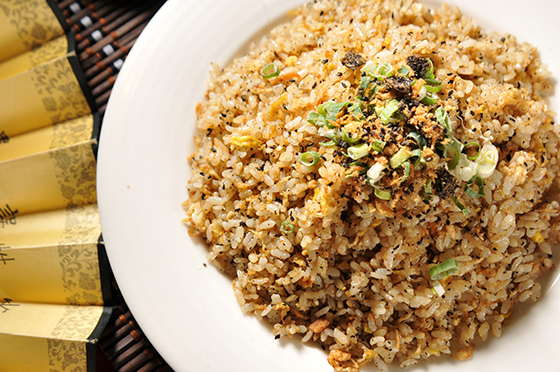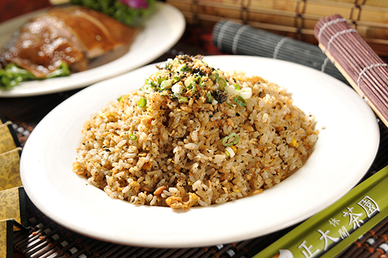 炒得金黃的飯粒,粒粒分明的口感,帶著一點點的焦香,風味更加提升,每一口都能享受到獨家的茶葉香氣。