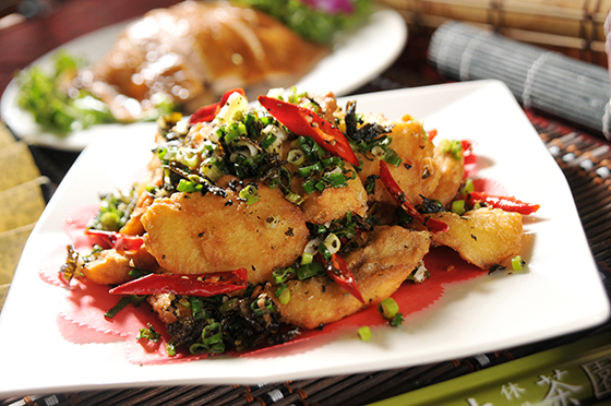 炸得酥脆的魚片,內軟外酥的口感,綿密的魚肉入口即化,搭配上一點點重口味的青蔥與辣椒,提升魚片風味。