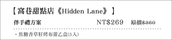 商品簡述: 店取:只要269元即可享有【窩巷甜點店《Hidden Lane》】原價360元伴手禮方案:焦糖香草籽烤布蕾乙盒(5入)。