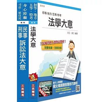 104年司法五等[錄事][專業科目]套書,書籍成分含括:法學大意、民事與刑事訴訟法大意。準備民事與刑事訴訟法大意及法學大意之最佳方法為熟讀法條、輔以大量試題演練,掌握考點,必獲高分!