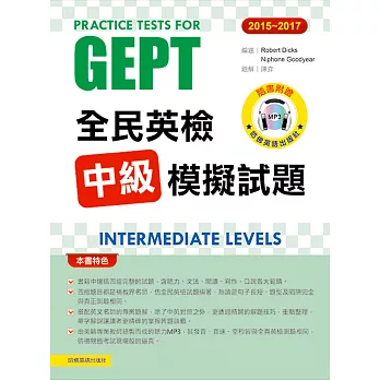 本書另附1片由美籍專業教師錄製而成的聽力MP3,其發音、音速、空秒皆與全真英檢測驗相同,彷彿親臨考試現場般的逼真。