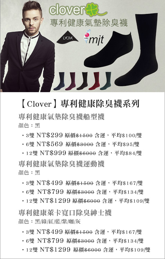 .....Clover-專利健康除臭襪系列"
