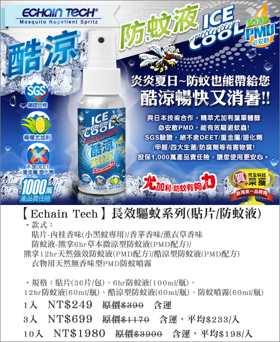 .....Echain Tech-長效驅蚊系列(貼片/防蚊液)